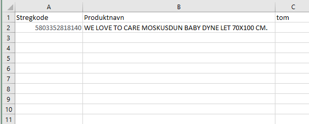 Tom - Vores system acceptere kun filer der består af 3 kolonner. lad denne kolonne stå blank, men angivet med overskriften "Tom" -