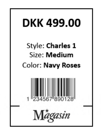 Hvis muligt må prismærket også gerne medtage Logo, stylenavn/-nummer og farve.