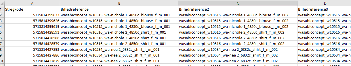 Additional images can be listed in the following columns – up to 8 images per product.