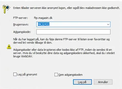 Enter in the path: FTP.magasin.dk - You will now be presented with a new login window.